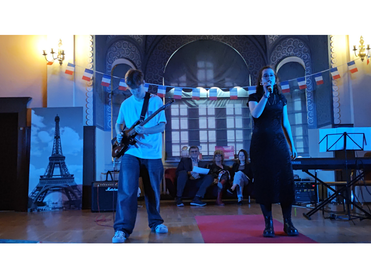 Usłyszeliśmy największe przeboje francuskiej piosenki, zobaczyliśmy pokaz mody Haute Couture i wybraliśmy najlepsze stylizacje, rozwiązaliśmy quiz wiedzy o wszystkim co francuskie, a na koniec czekała na nas taneczna niespodzianka – kankan, najbardziej znany taniec francuski. A wszystko to przeplatane było krótkimi filmikami w stylu TikToka nagranymi przez uczniów uczących się francuskiego, w których w żartobliwy sposób mówili o swoich doświadczeniach związanych z nauką tego języka.