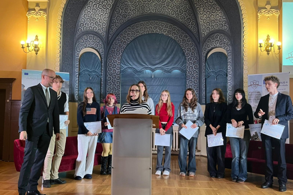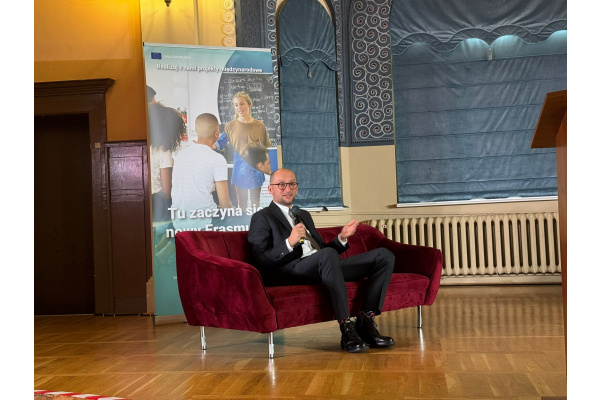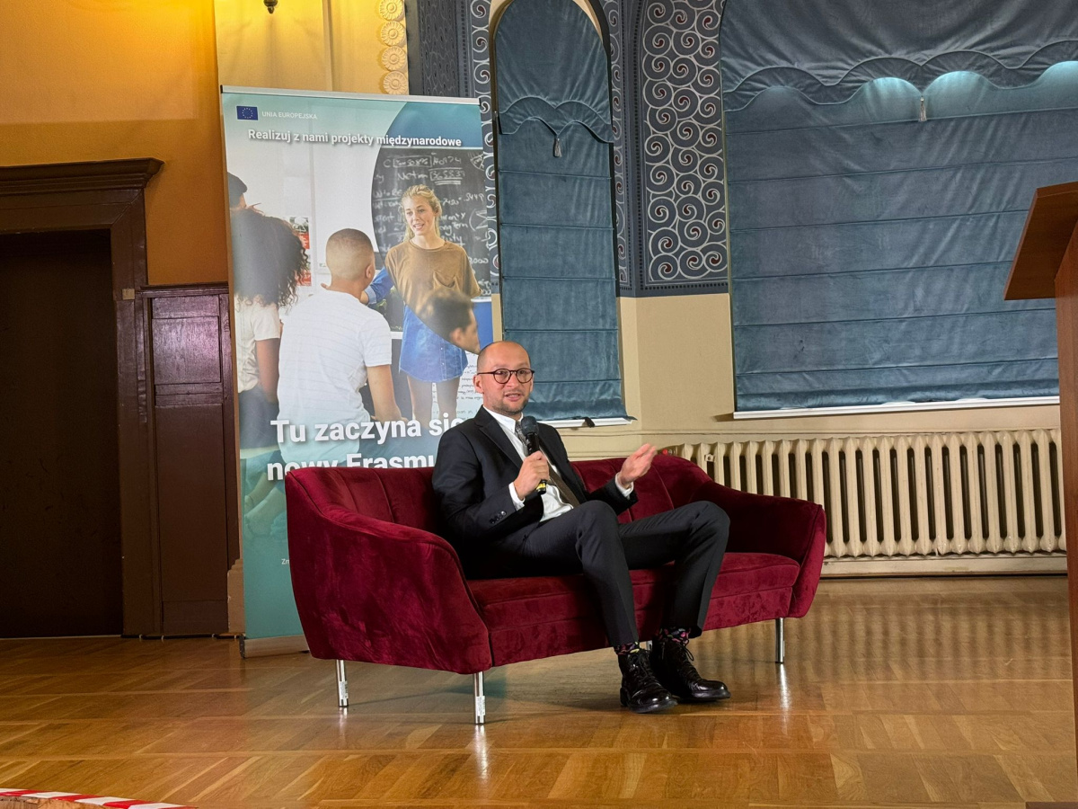 Najważniejszym momentem spotkania była rozmowa z dr. Sławomirem Drelichem, członkiem zarządu FRSE, etykiem i politologiem, związanym z Uniwersytetem Mikołaja Kopernika w Toruniu. Rozmowa, prowadzona przez trójkę uczniów, dotyczyła wartości europejskich, edukacji obywatelskiej, etyki życia publicznego oraz roli młodzieży w kształtowaniu przyszłości Europy. Dr Drelich podkreślał znaczenie dialogu, odpowiedzialności i świadomego uczestnictwa w życiu społecznym, zachęcając młodych ludzi do aktywnego działania i budowania wspólnoty opartej na wartościach.