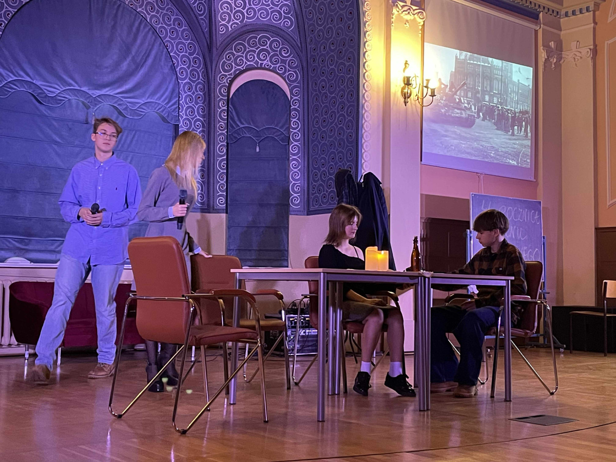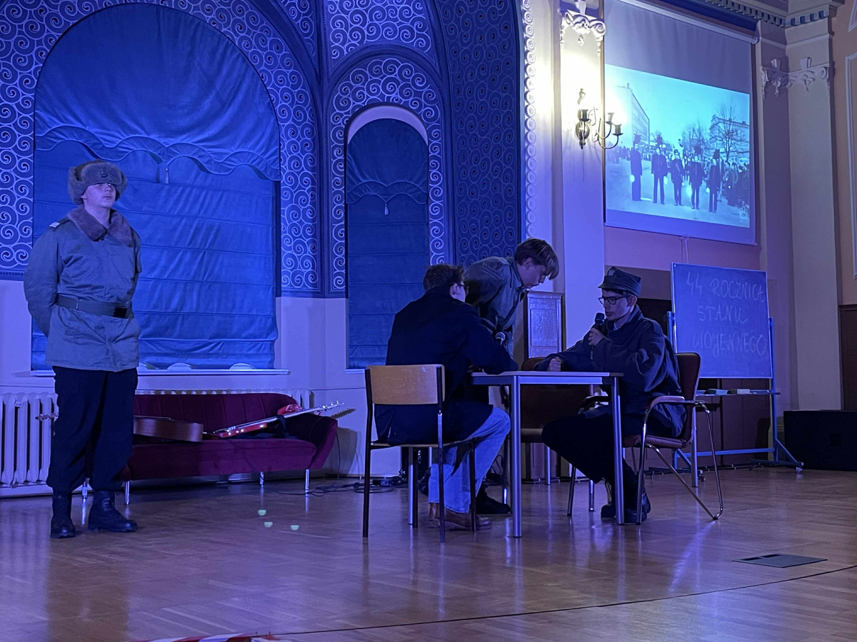 Za sprawą klasy 1g oraz pani dr Nel Powel przenieśliśmy się do mroźnego, pełnego napięcia grudnia 1981 roku – do świata ciszy przerywanej radiowymi komunikatami, kolejek pod sklepami i rozmów szeptanych z obawy przed podsłuchem. Uczniowie nie tylko przypomnieli nam suche fakty historyczne, lecz przede wszystkim oddali atmosferę tamtych dni: niepewność jutra, strach zaglądający do domów oraz niezłomną nadzieję, która pozwalała polskim rodzinom przetrwać najtrudniejsze chwile.