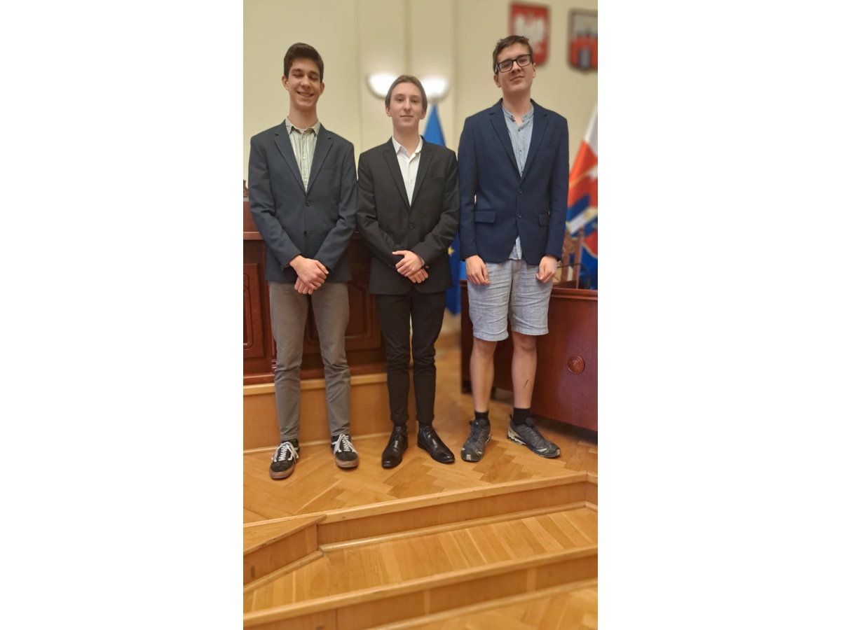 Z ogromną radością informujemy, że troje naszych uczniów, Mikołaj Mrozowski (3b), Piotr Szymkowiak (3b) i Julian Winczewski (3b), odniosło znaczący sukces w tegorocznych wyborach do Młodzieżowej Rady Miasta Bydgoszczy. Dzięki swojej aktywności, pomysłowości oraz zaangażowaniu w sprawy młodzieży zdobyli zaufanie rówieśników i zostali wybrani na przedstawicieli naszej szkoły.