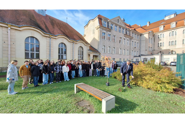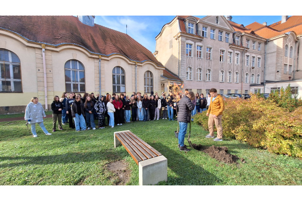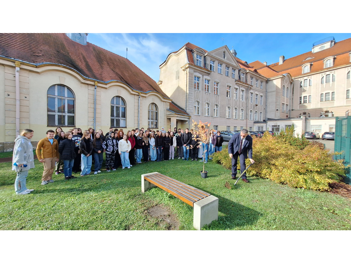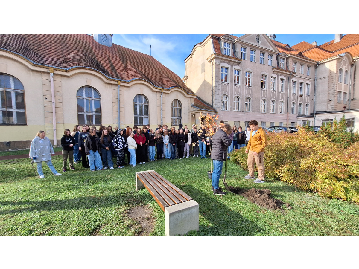 Dnia 10 października obchodzimy Światowy Dzień Drzewa. Z tej okazji, tradycyjnie już, społeczność VI LO zebrała fundusze na zakup kolejnego drzewa do kolekcji. W tym roku posadziliśmy grujecznika japońskiego (drzewo piernikowe), poszerzajac naszą kolekcję parkową. Drzewo otrzymało imię KOPIERNIK, które od tej pory będzie je wyróżniać i nadawać mu wyjątkowy charakter. Nadanie imienia drzewu to piękny gest – symboliczny sposób na zaznaczenie więzi człowieka z naturą.