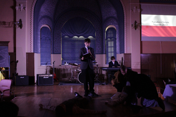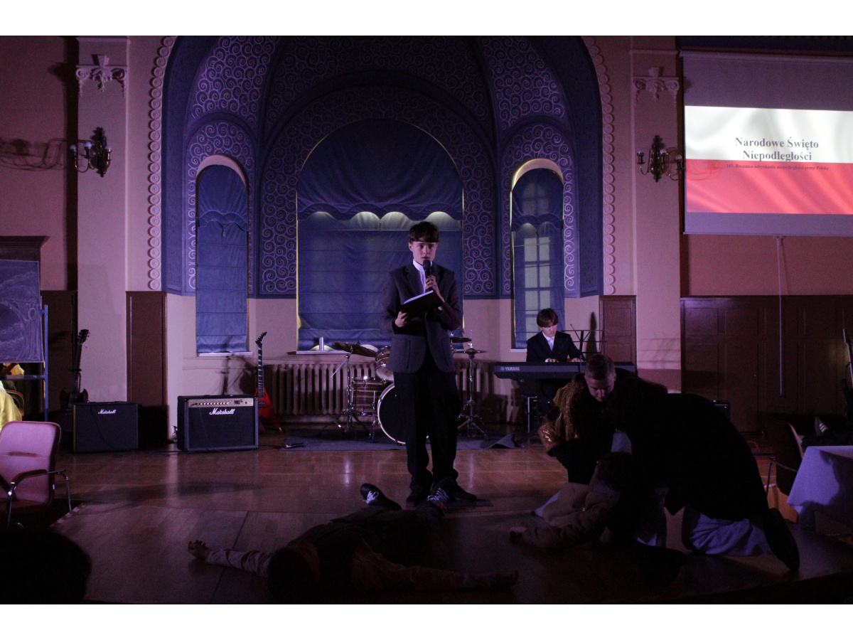 Część artystyczną przygotowała klasa 3a pod opieką p. prof. Jolanty Kaźmierczak. Uczniowie zaprezentowali wzruszający program słowno-muzyczny przypominający najważniejsze wydarzenia z historii naszego kraju. Recytacje wierszy patriotycznych oraz scenki historyczne wprowadziły wszystkich w podniosły, a zarazem refleksyjny nastrój.
