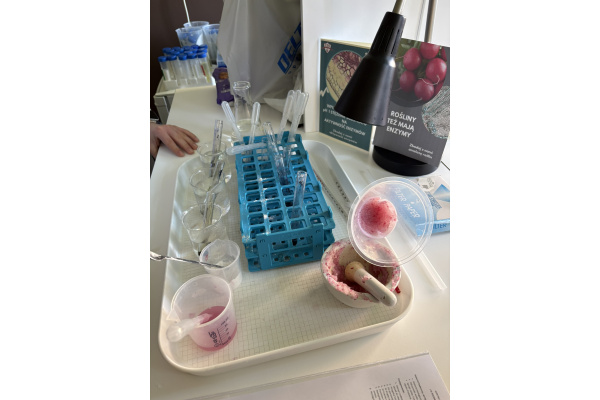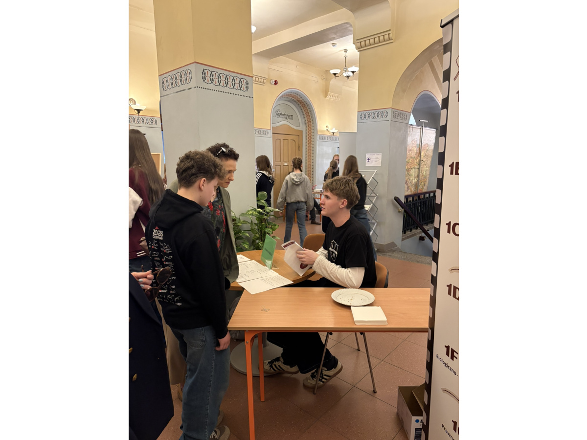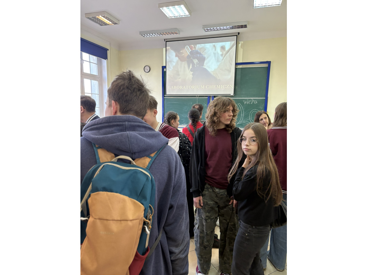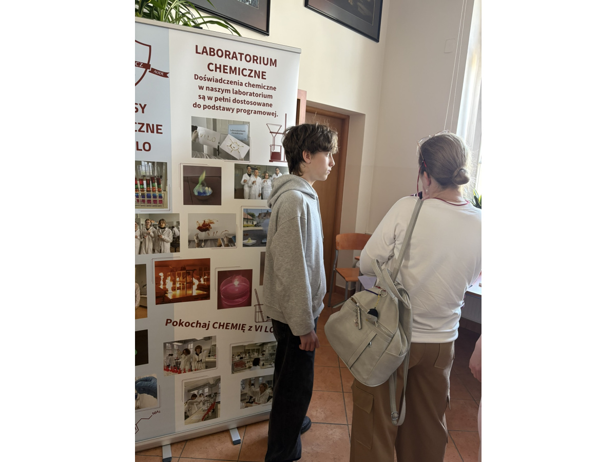 Odwiedzający mogli zajrzeć do naszych laboratoriów biologicznego i chemicznego, gdzie czekały na nich nie tylko pokazy, ale też angażujące warsztaty i eksperymenty. Miłośnicy wyzwań dali się porwać polonistycznemu escape roomowi – było sporo główkowania, emocji i literackich zagadek.