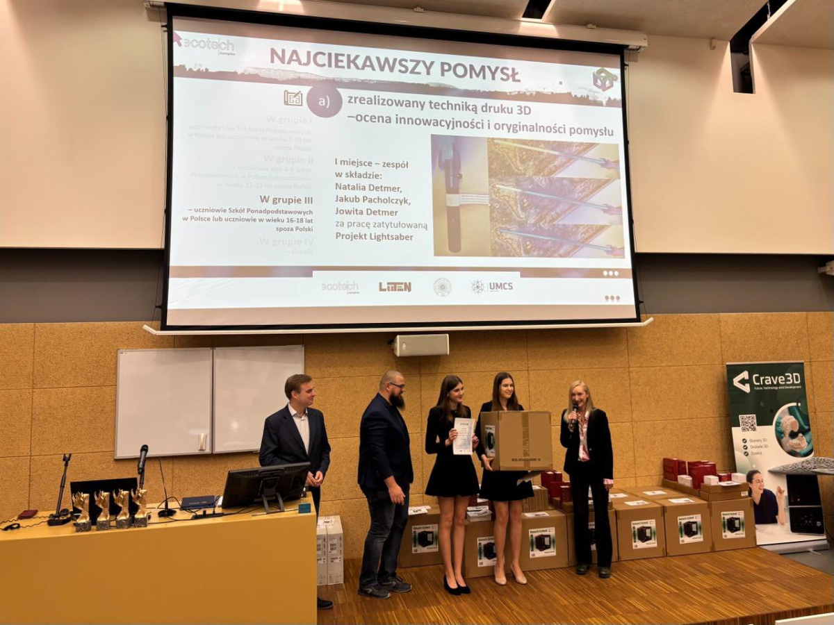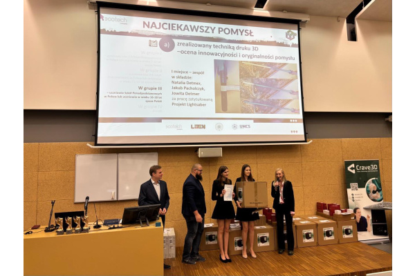 zdobył I miejsce w międzynarodowym konkursie 3D EduArt 2025 za projekt „Lightsaber”, wyróżniony w kategorii - najciekawszy pomysł zrealizowany techniką druku 3D w grupie uczniów szkół ponadpodstawowych z Polski oraz młodzieży w wieku 16–18 lat z zagranicy.