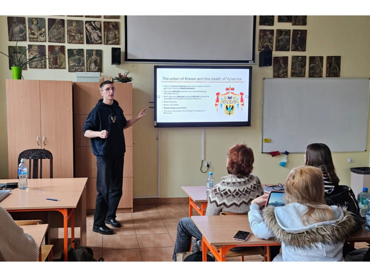 W dniach 12–16 stycznia 2026 r. nasza szkoła gościła delegację z Vilniaus Radvilų gimnazija w ramach programu Erasmus+. Wizyta obejmowała mobilność grupową dwunastu uczniów oraz job shadowing dla trojga nauczycieli – dwóch anglistek i nauczyciela historii.
