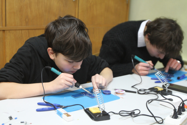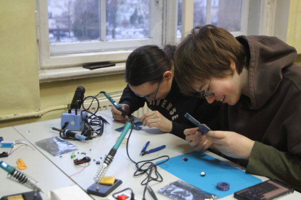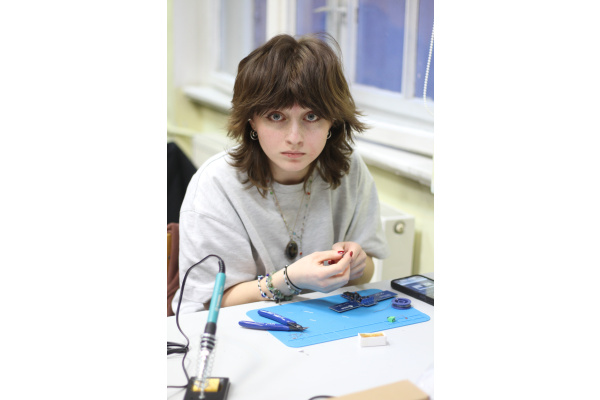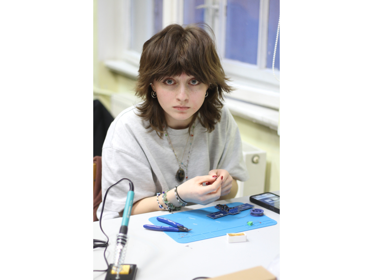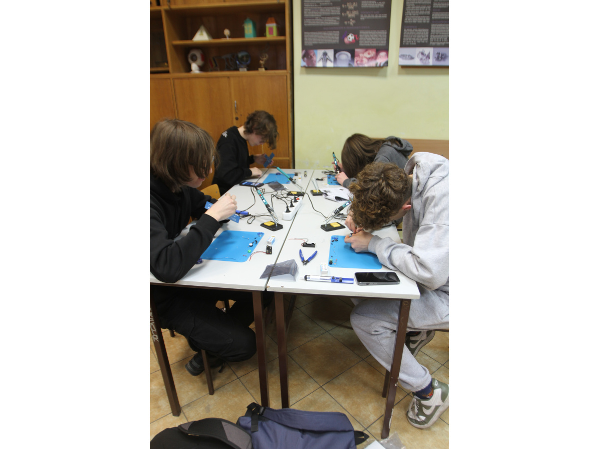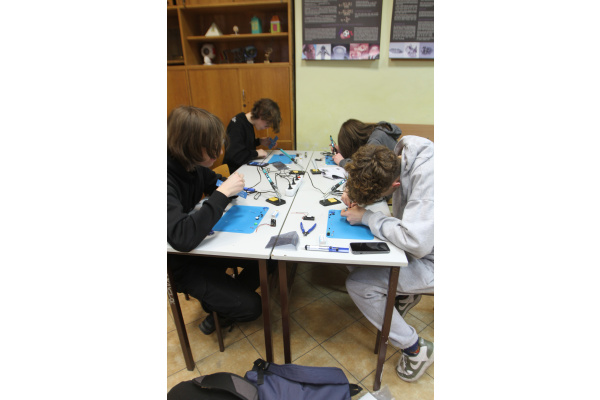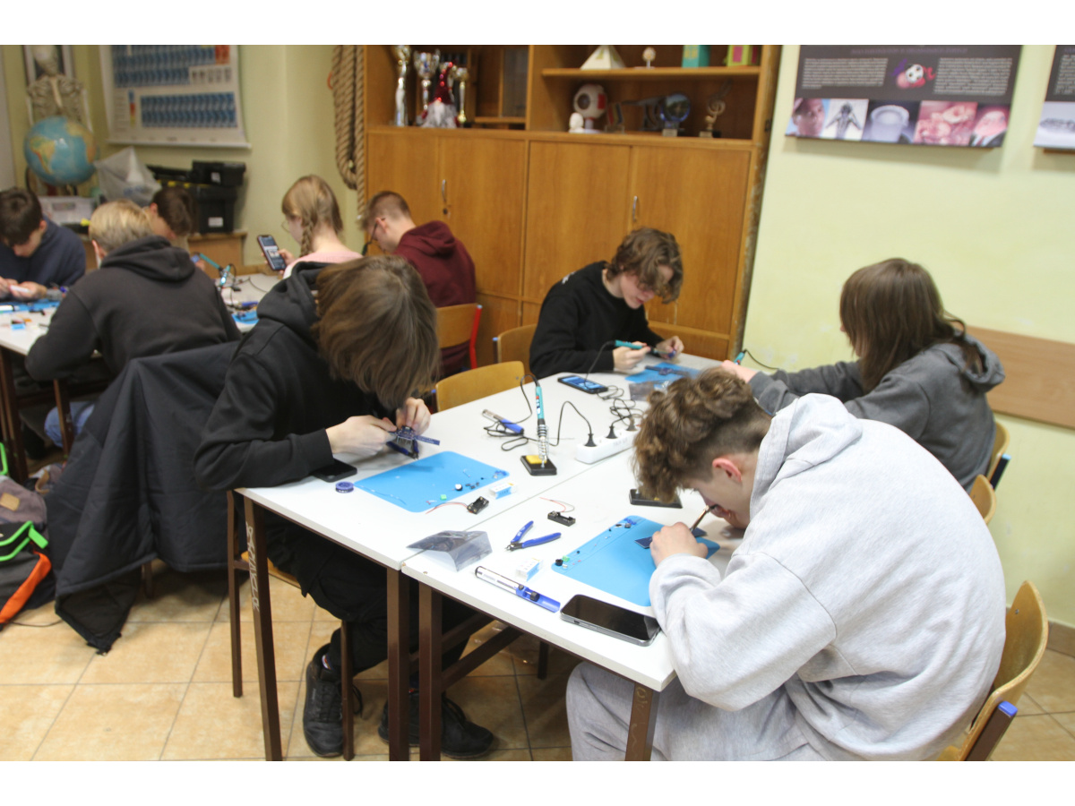 Podczas zajęć uczestnicy nie tylko zgłębiali tajniki inżynierii, ale przede wszystkim zdobywali praktyczne umiejętności. Uczyli się profesjonalnego lutowania oraz poznawali działanie zaawansowanych elementów elektronicznych.