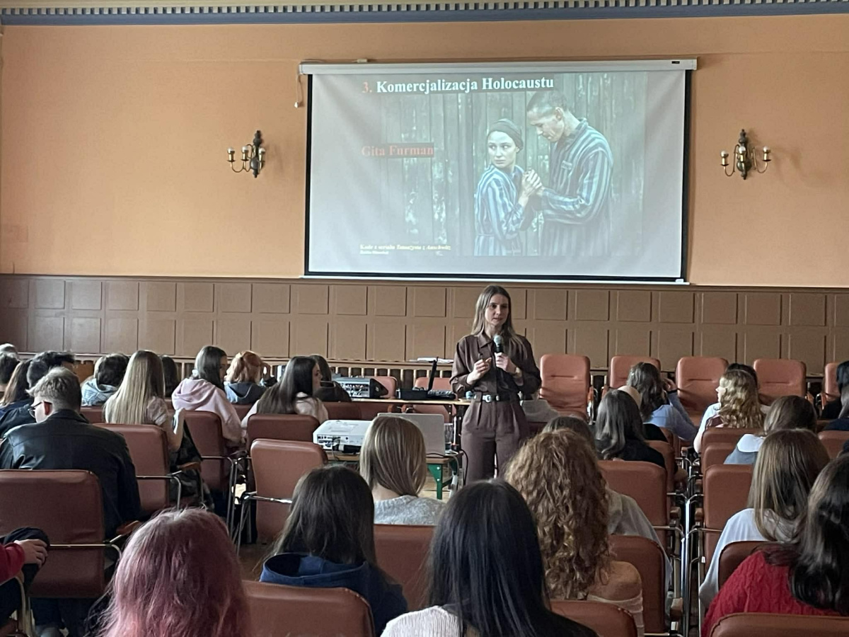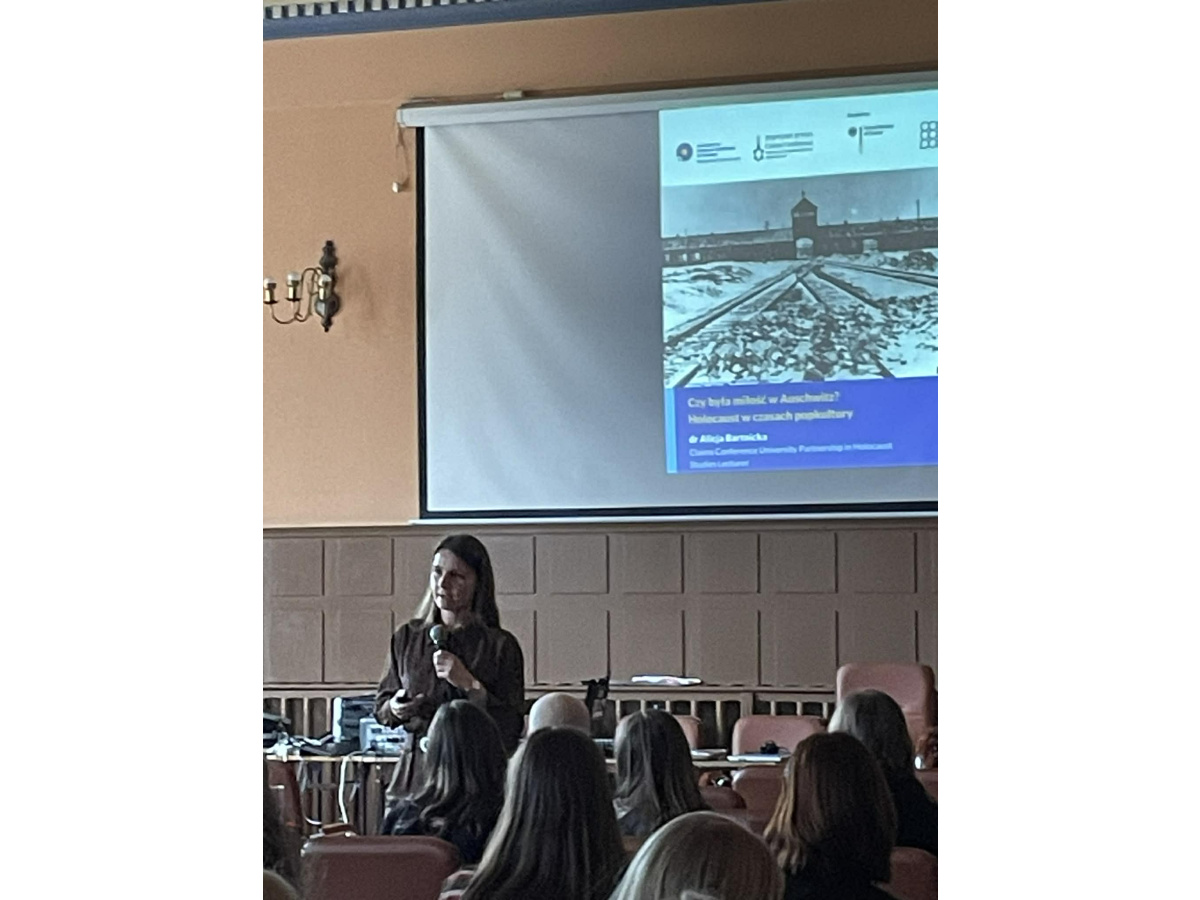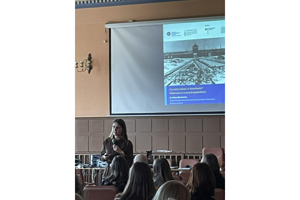 Naszym gościem była dr Alicja Bartnicka z Wydziału Historycznego Uniwersytetu Mikołaja Kopernika w Toruniu, która wygłosiła wykład pt. „Czy była miłość w Auschwitz? Holocaust w czasach popkultury”.